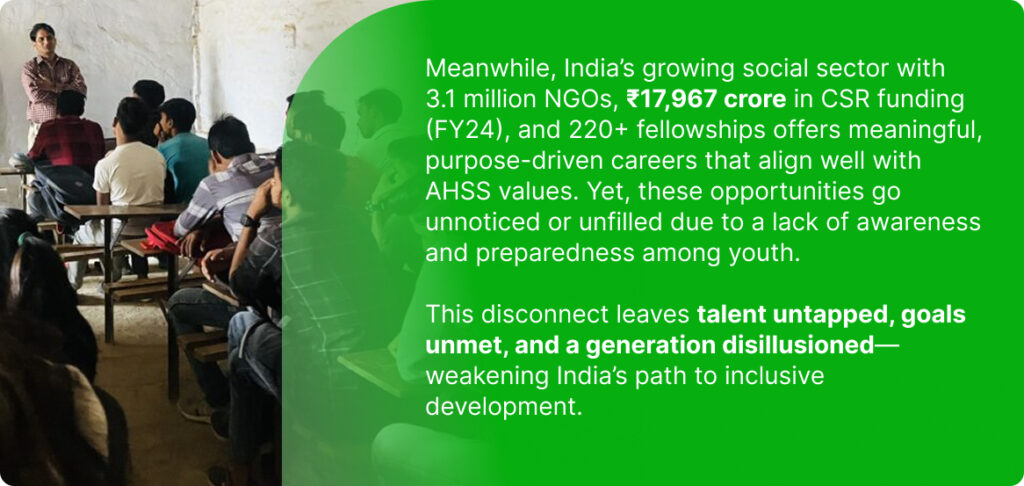 - Despite 220+ fellowships across 50+ ministries, the social sector struggles to attract prepared candidates from AHSS backgrounds.